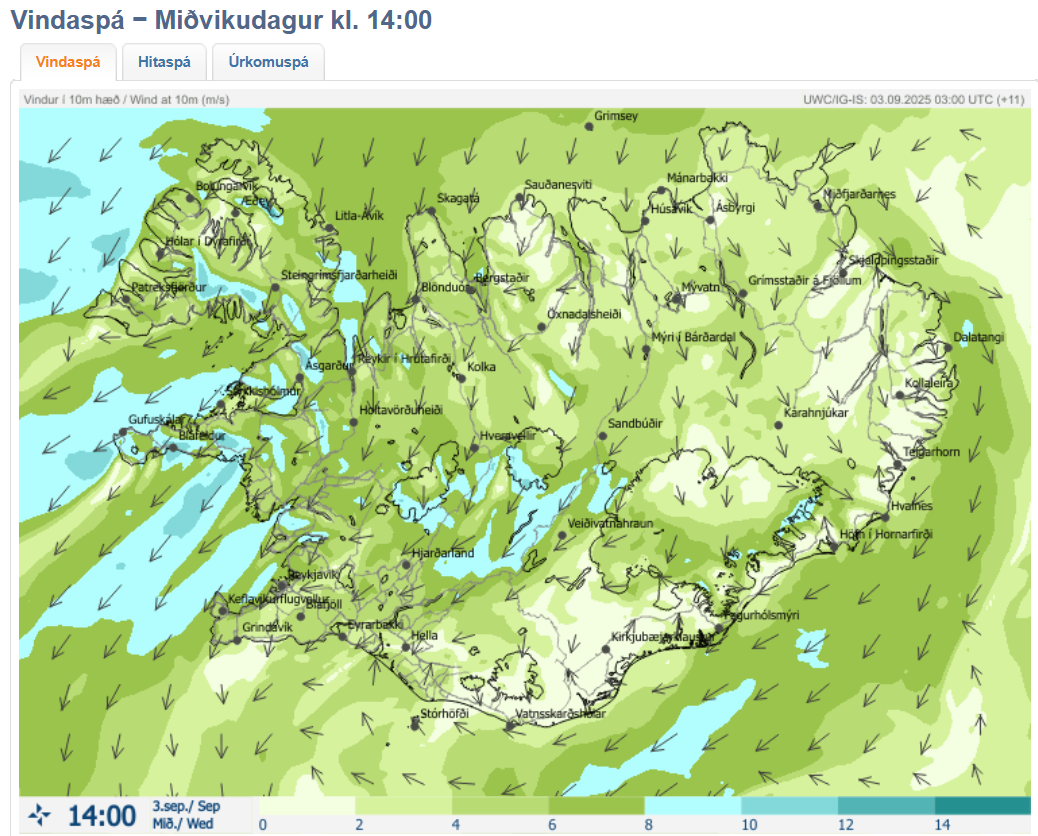 Spá gerð: 02.09.2025 21:32. Gildir til: 09.09.2025 12:00.
