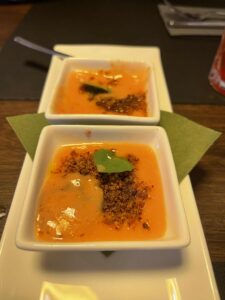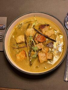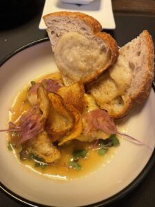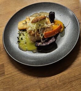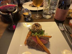 Þjónustan var mjög persónuleg og þægileg og rætt við okkur um matseðilinn og hvaðan hráefnið væri. Það var athyglivert að heyra að hreindýrakjötið er sérstaklega handerað fyrir veitingahúsið af samstarfsaðila í Lapplandi nánar tiltekið í norður Svíþjóð. Kokkurinn kom svo til okkar og lýsti meðferð kjötsins og matreiðslu þess sem og ræddum við um aðra rétti á matseðlinum.