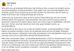 Þetta kemur fram í færslu Ingu á Facebook. Guðmundur Ingi Kristinsson tilkynnti um ákvörðun sína fyrir stundu. Hann gekkst undir hjartaaðgerð í desember og segist vilja einbeita sér að því að ná bata.