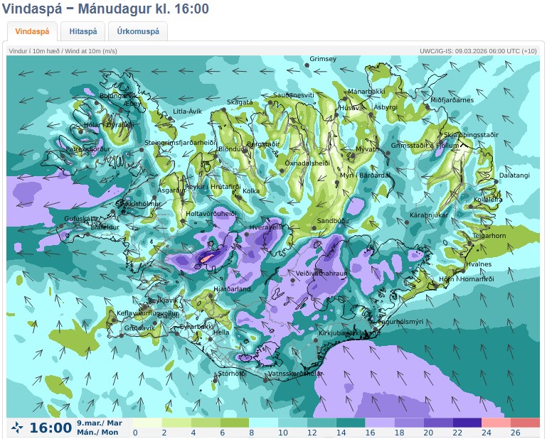 Spá gerð: 09.03.2026 08:31. Gildir til: 16.03.2026 12:00.