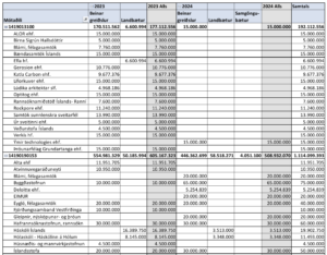 Fyrirspurnin hljóðar svo: Hvaða aðilar fengu hærri greiðslu eða stuðning en 3 millj. kr. á ári til aðgerða í loftslags málum árið 2023 annars vegar og 2024 hins vegar og hvaða upphæð fékk hver þeirra? Svar óskast sundurliðað eftir því hvort um skattstyrki, samgöngubætur, landbætur eða beinar greiðslur var að ræða.