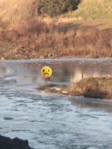 ,,Myndin sýnir barn á þunnri íshellu við Blöndu. Áin er ekki leiksvæði og getur verið lífshættuleg. Vinsamlega brýnið fyrir börnum að halda sig frá ísnum og ánni.“ Segir í athugasemd lögreglu um athæfið.