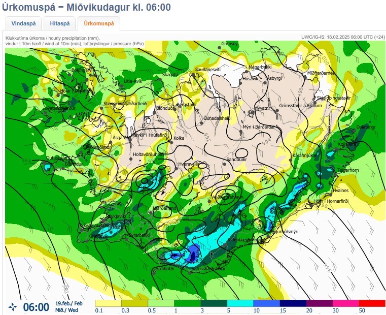 Spá gerð: 18.02.2025 06:12. Gildir til: 19.02.2025 00:00.