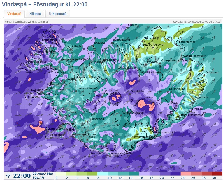 Spá gerð: 20.03.2026 08:41. Gildir til: 27.03.2026 12:00.