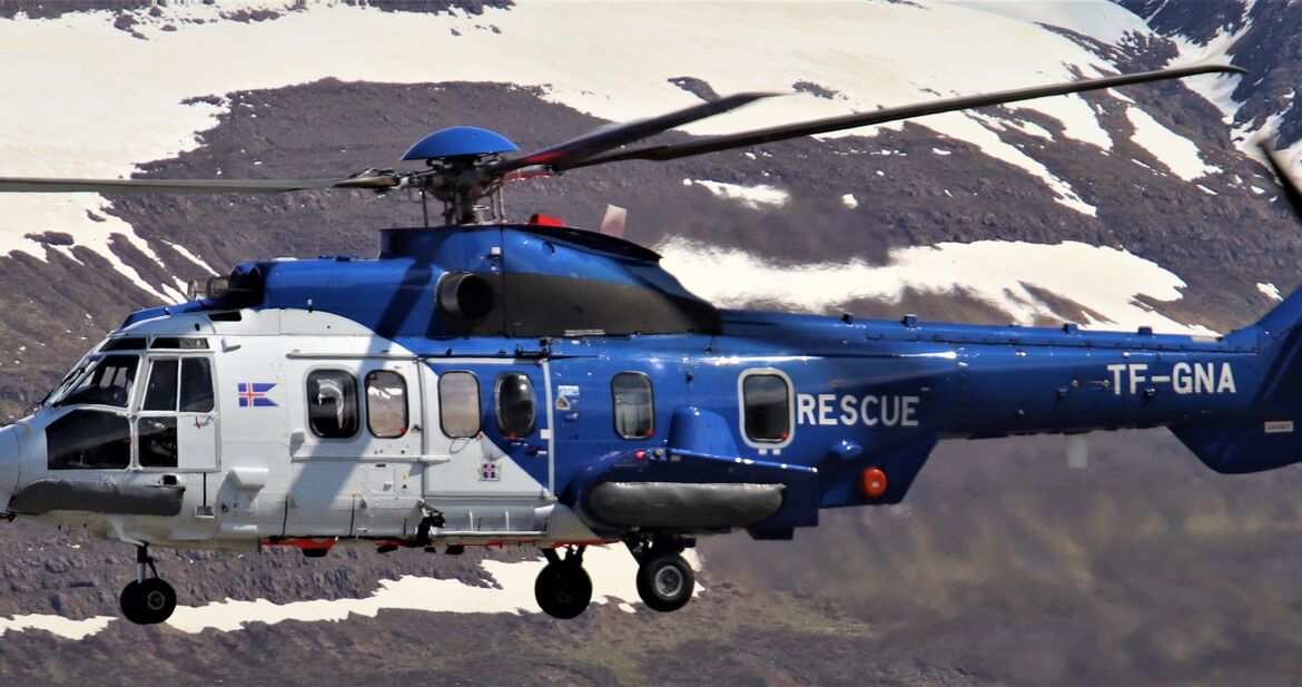 Stjórnstöðin kallaði tvær þyrlur út eins og alltaf er gert þegar farið er út fyrir 20 sjómílur frá ströndu.