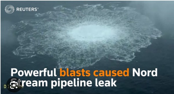 Sprengjum hafi verið komið fyrir í Eystrasalti á Nato-flotaæfingu sumarið 2022. Jake Sullivan öryggisráðgjafi Biden hafi stýrt aðgerðum úr Eisenhower byggingunni gengt Hvíta Húsinu. Í febrúar 2022 hafði Joe Biden í hótunum í sjálfu Hvíta húsinu með kanslara Þýskalands sér við hlið. Ef Rússar færu inn í Úkraínu; „…We will bring an end to it [Nord Stream], I promise you. We can do it.“ Olav Scholz kinkaði kolli.