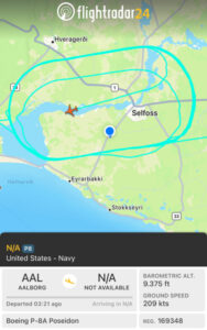 Flugvél frá bandaríska sjóhernum hefur undanfarna klukkustund hringsólað í kringum Selfoss. Fleiri herflugvélar hafa verið á flugi yfir Suðurlandi í morgun